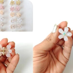 Aashvi Styles,Floral Mini Hair Claw Clips, Pastel Colours, Crystal Rhinestone Centre, 12 Pieces For Women Sweet Artificial Decorative Hair Accessories
