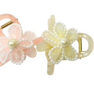 Aashvi Styles Elegant Flower Hair Claw Clips with Pearl Detail, Pink and Cream, 2 Pieces