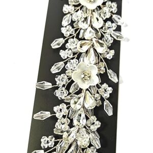 Aashvi Styles Crystal Bridal Hair Tiara, Handmade Floral Design with Clear Beads, (Silver )